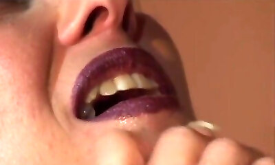 Purple Lips & Horny Smiles: Retro Vintage Sex Scene with Busty Brunette