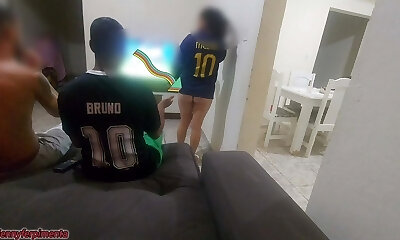 Fucking My Hot Wife while She Gives Her First Blowjob to Our Black Friend